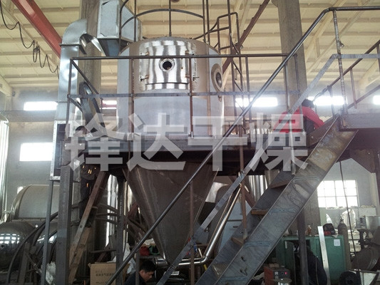 该机采用全封闭形式,所有部件均采用不锈钢制造,配有三级净化装置,过滤后的空气达十万级要求。筒体与顶部装有冷壁装置,使壁温<80℃,干燥塔内装有气刷扫塔装置。经该机干燥后的浸膏粉,不会出现焦化变质现象,大大增加了收粉率(95%以上),而且不会产生混料现象和粘壁现象。